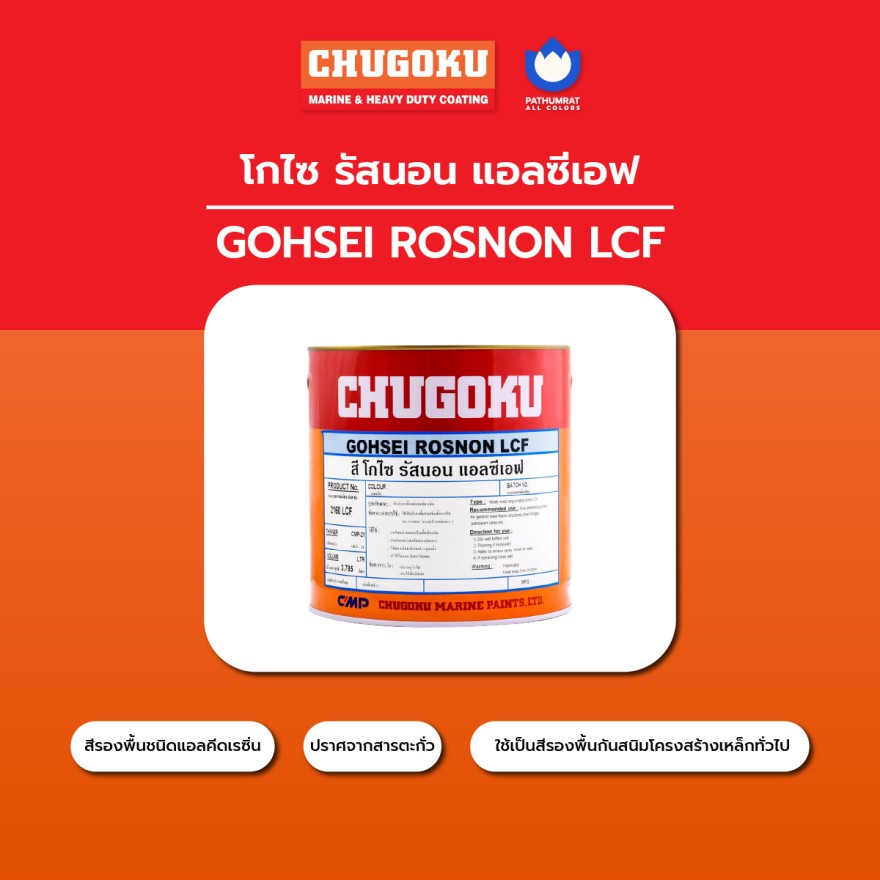 GOHSEI ROSNON is a ready mixed alkyd primer containing rust-preventing pigment And the other component is free from lead&chrome It has effective rust-preventing property , excellent resistance to impact and bending
